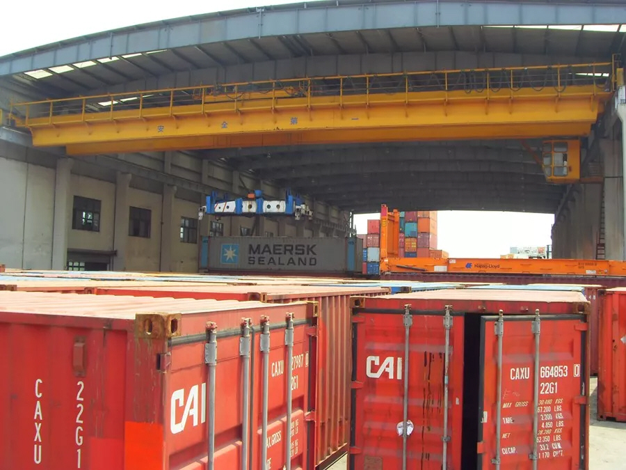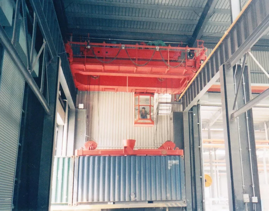 产品介绍:集装箱桥式起重机是目前应用较为广泛的集装箱装卸作业起重机械,其主要由箱形桥架、起重专用小车、大车运行机构、集装箱专用吊具和电气控制系统组成。可配置国际标准集装箱伸缩吊具或固定式吊具,吊具下亦可挂接快速脱卸式专用吊具、吊杠或吊钩,实现多种物资的吊装作业,实现一机灵活多用。主梁上面铺设有轨道,供起重小车沿主梁方向作横向移动。主梁与箱型端梁焊接而成,端梁中间布置有接头,螺栓或销轴连接,供桥架分拆运输。操作方式设有地面手柄、无线遥控和司机室三种操作形式。驾驶室内有可调式座椅,底板铺设绝缘垫,窗玻璃采用钢化玻璃,可根据用户要求配置冷暖空调、监控视频、讯响器、对讲机等物品。