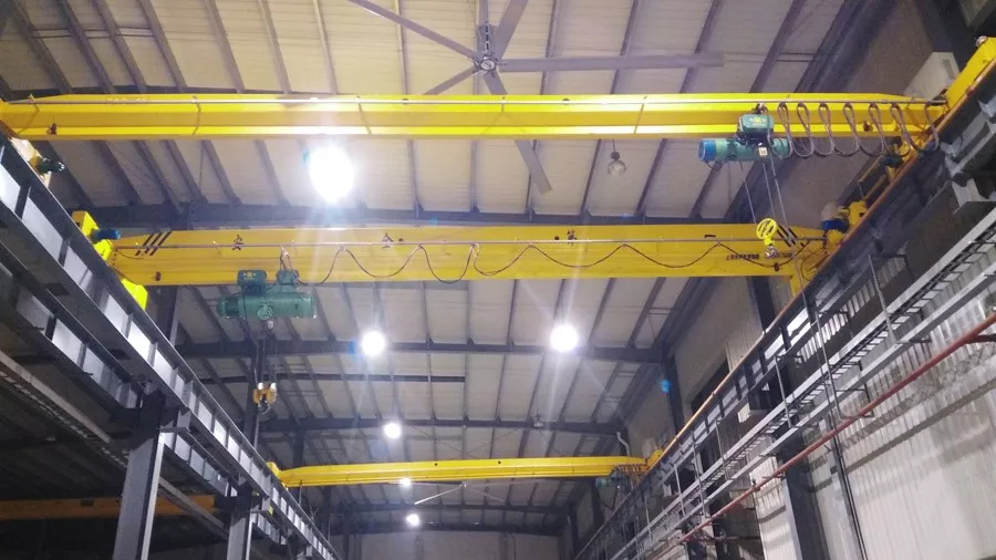 产品介绍:LDA型电动单梁起重机(以下简称起重机)是与CD1型(升降单速)或MD1型(升降双速)电动葫芦配套使用的一种有轨运行的轻小型起重机,起重量为1~16吨,跨度为7.5~36.5米,工作级别为A3~A4。适用于机械制造、装配、仓库等场所进行一般吊重装卸作业; 本产品有地操、无线遥控和空操三种操纵方式,可供用户选择,本产品的工作环境温度在-25~+40°C范围内,不适用于有火灾危险,爆炸危险的介质和相对湿度大于85%,充满腐蚀性气体的场所,也不适用于吊运融化金属和有毒、易燃、易爆的物品,本产品符合GB/T1306《LD电动单梁起重机》国家标准。